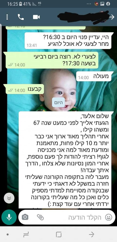 מאוד משמח לדעת שאפילו שהתהליך נגמר לפני שנה , ההרגלים שהוטמעו נשארים ונשמרים ועוזרים לשמור על אורח חיים הכולל תזונה ופעילות גופנית
